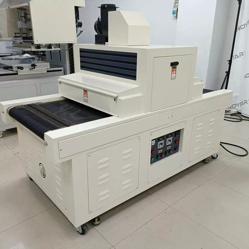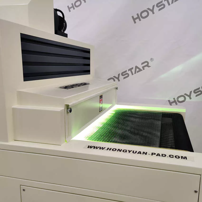 Ar norite įsigyti su nuolaida ir kokybišką 1000 mm pločio konvejerio UV kietėjimo mašiną? Mūsų brangūs klientai visame pasaulyje, kviečiame nusipirkti iš mūsų gamyklos Kinijoje. Ši HOYSTAR 1000 mm pločio konvejerio UV kietėjimo mašina skirta kietėjimo procesams po spausdinimo naudojant UV rašalą. Jis naudoja UV spindulių poveikį, kad akimirksniu išdžiūtų ir sukietėtų UV rašalo plėvelė. Įrenginys užtikrina efektyvų UV rašalo, atspausdinto ant popieriaus, PVC ir kitų minkštų ar plonų pagrindų, džiovinimą.