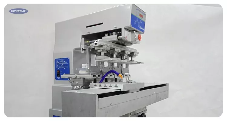 Šis HOYSTAR 4 spalvotas tamponinis spausdintuvas su dangteliu yra didelės galios ir ekonomiška spausdinimo įranga. Įrenginys siūlo patogų reguliavimą, stabilų veikimą ir gerą spausdinimo efektą. Aparatas užtikrina pastovią spausdinimo kokybę ir yra tinkamas spausdinti įvairius elementus, tokius kaip elektroniniai gaminiai, plastikiniai apvalkalai, techninės įrangos gaminiai, raštinės reikmenys, smulkieji menai ir amatai, taip pat maži logotipai ant dovanų paviršiaus ir kt. Gali patenkinti įvairius kliento spausdinimo reikalavimus.