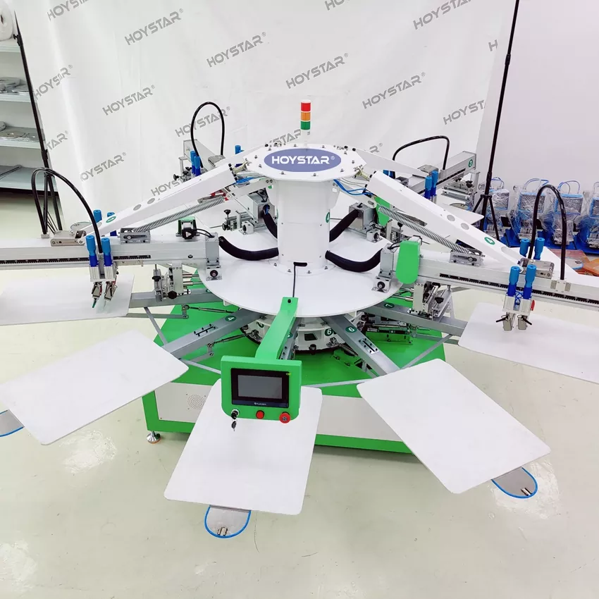 Ši HOYSTAR 4 spalvų marškinėlių tekstilės spausdinimo šilkografijos mašina sukurta specialiai spausdinimo pramonei. Įrengtas išmanusis mikroprocesorius, jutiklinis ekranas ir varikliu valdoma sistema, užtikrina aukštą spausdinimo stabilumą ir spalvų registravimo toleranciją ±0,1 mm tikslumu ir žymiai pagerina spausdinimo tikslumą ir nuoseklumą. Tinka įvairioms spausdinimo programoms, tokioms kaip marškinėliai, drabužiai, etiketės ir audiniai. Šis automatinis ekrano spausdintuvas yra jūsų idealus sprendimas didelio tikslumo ir efektyvaus spausdinimo gamybai.