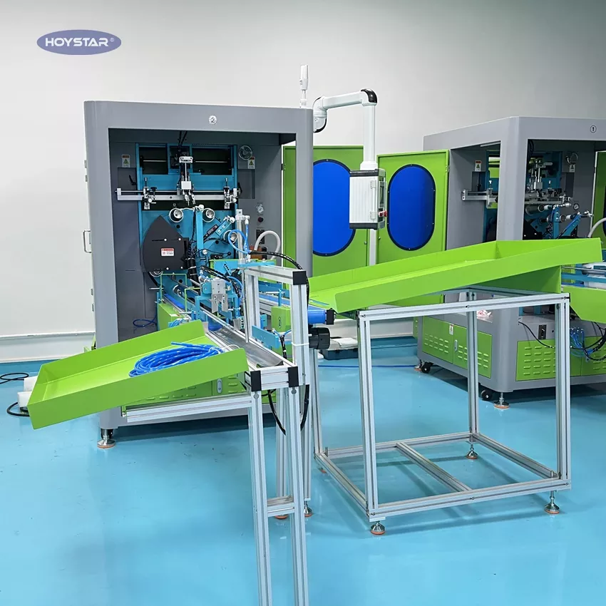 Kaip profesionalus gamintojas Kinijoje, norėtume jums pasiūlyti didelio efektyvumo HOYSTAR pilnai automatinę daugiaspalvių plastikinių puodelių šilkografijos mašiną, didelio efektyvumo šilkografijos sprendimą, pritaikytą konkretiems scenarijams – mūsų specializuotą visiškai automatinę puodelių šilkografijos mašiną. Ši mašina skirta spausdinti ant puodelių ir turi visiškai automatinę darbo eigą: automatinį įkėlimą, automatinį spausdinimą, automatinį iškrovimą ir LED UV kietėjimą. Labai sumažina darbo sąnaudas ir sumažina klaidų skaičių spausdinant, užtikrinant stabilius spausdinimo rezultatus masinėje gamyboje.